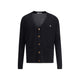 Vivienne Westwood’s Alex Cardigan is a versatile garment with a refined character. Featuring a V-neckline and a front button closure, it has two welt pockets on the front and an embroidered logo, the house’s signature symbol, on the chest.