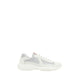 Prada’s America’s Sneakers are a modern and stylish interpretation of the classic sneaker, ideal for those seeking comfort without sacrificing style. Featuring a lace-up closure, they offer an adjustable and secure fit. The slightly elongated toe adds a distinctive touch, while the textured sole ensures a stable and comfortable walk. The leather and fabric panel design creates a dynamic and contemporary visual effect, while the brand’s iconic applique logo on the tongue adds an understated luxury detail.