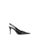 Saint Laurent’s leather Babylone Pumps express bold and sophisticated femininity. Featuring an elongated toe with elegant cut-out details, they are embellished with the iconic YSL metallic element applied to the front. The elasticized slingback strap ensures a comfortable fit, while the leather stiletto heel slims the silhouette with class. The branded insole completes the model with a distinctive touch.
