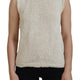 Beige Cotton Blend Sleeveless Round Neck Tank Top