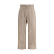 Beige Cotton Casual Pants