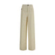 Beige Cotton Casual Pants