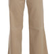 Beige Cotton Mid Waist Flared Trousers Pants