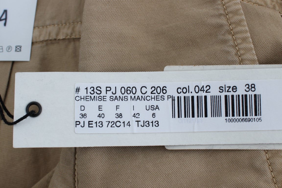 Beige Cotton Sleeveless Shirt