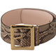 Beige Exotic Leather Wide Gold Metal Buckle Belt