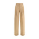 The Paride Trousers by Max Mara Studio embody relaxed sophistication and fluid elegance. Crafted from pure virgin wool drap, they feature a wide-leg silhouette and a softly flowing fit that moves effortlessly with the body. The matching coated fabric belt allows for a refined definition of the waist, while the double front pleats add subtle structure and volume. A high waistband with concealed zip and hook closure showcases precise tailoring, complemented by slanted side pockets and a pressed crease that enhances their polished look. Perfect for refined yet effortless ensembles, these trousers capture Max Mara Studio’s signature balance of comfort, craftsmanship, and timeless femininity.