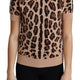 Beige Leopard Print Virgin Wool Turtleneck Top
