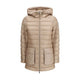 The Jasmin short Down Jacket by Moncler is an elegant and functional garment, made in longue saison with a water-repellent main fabric that protects against the elements. The padded design offers warmth and comfort, while the adjustable hood adds practicality. The zip closure and snap-button pockets ensure security, while the drawstring waist allows you to adjust the fit for a more defined look. Perfect for facing the cold in style, without sacrificing functionality.