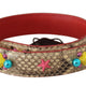 Beige Python Leather Crystals Shoulder Strap