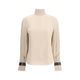 Brunello Cucinelli’s silk crepe de Chine turtleneck Blouse is a feminine and refined piece, perfect for completing elegant looks with a light touch. The fluid, lightweight fabric enhances the essential silhouette, while the drop opening with a button at the back adds delicacy to the design. The high neck is embellished with a removable jewel decoration, the Precious Bracelets, which give a bright and sophisticated accent, in full Cucinelli style.