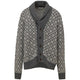 Cruciani Cashmere Cardigan. Grey color with contrasting white geometric workmanship. Front fastening with buttons. Composition: 100% Cashmere