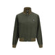 The technical canvas Blouson by Prada conveys a contemporary functional aesthetic. Designed with a high collar and long sleeves finished with elasticated cuffs, it features striped detailing on the collar and cuffs that adds a distinctive graphic touch. A front zip closure shapes the clean and practical structure, completed by the iconic enamelled triangular logo applied to the chest, a signature element of the brand.