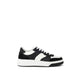 Dsquared2 Leather Bumper Sneakers. Front fastening with white laces, in white and black leather with black suede inserts on the front and back. Contrasting maple logo printed on the back, high white rubber sole and tone-on-tone Dsquared2 logo.