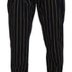 Black Beige Striped Cotton Stretch Pants