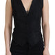 Black Brocade Button Down Sleeveless Vest Top