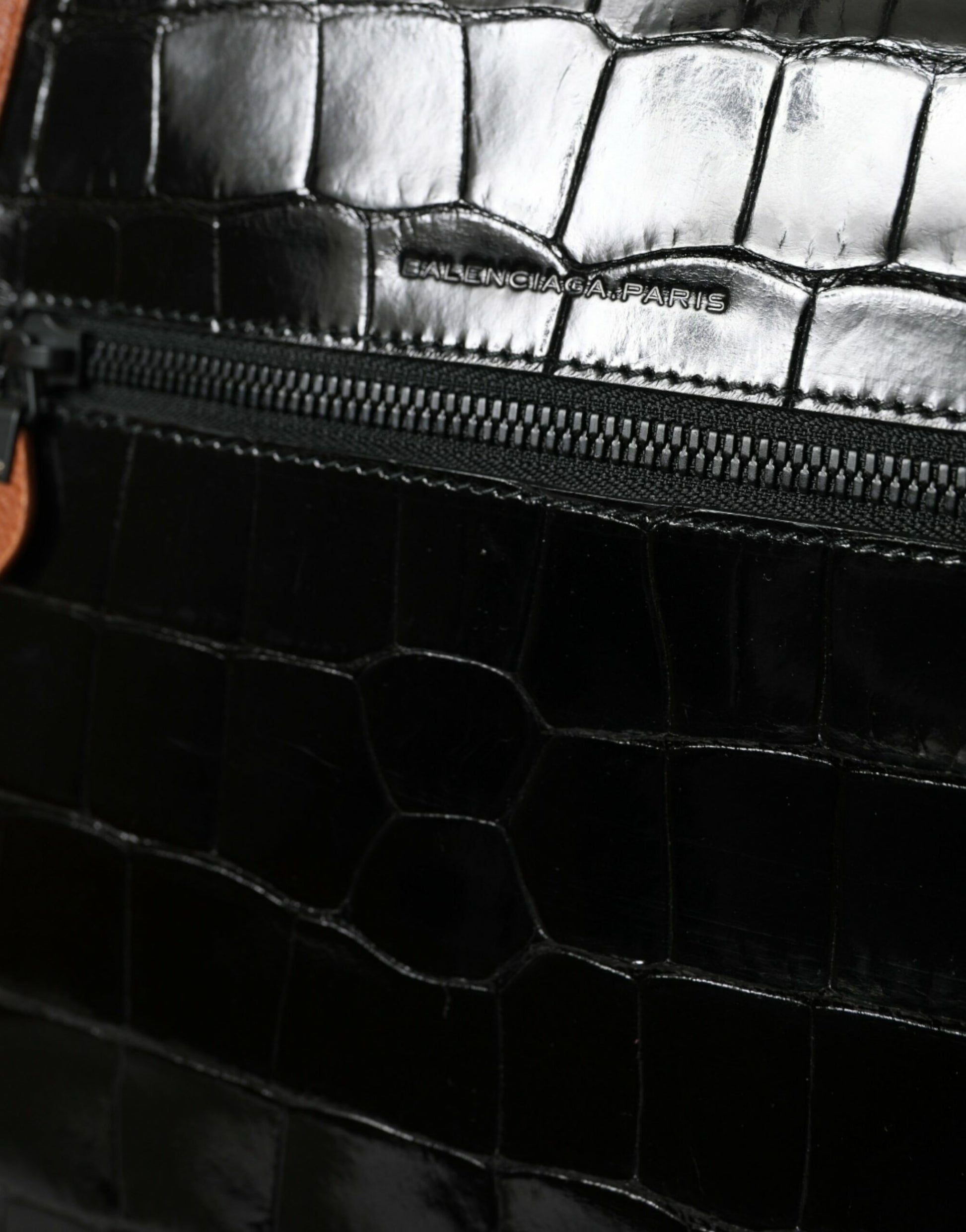 Black Brown Exotic Skin Leather Vertical Crossbody Purse Bag