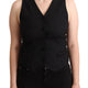 Black Button Down Sleeveless Viscose Vest Top