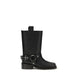 The biker Boots by Ganni are a bold and stylish take on traditional biker footwear. Featuring a square toe and block heel, they offer the perfect balance between comfort and style. The tabs and buckle strap with studs add a touch of grit and personality, making these boots ideal for those looking for a bold, contemporary look. Perfect for adding character to any outfit, from casual to rock chic.