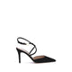 Suede leather Pumps with an elongated toe and braided strap at the front, adjustable with a buckle at the ankle embellished with a gold 3D detail. The leather stiletto heel lends elegance and momentum, while the branded insole completes the design with a touch of sophistication.