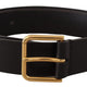 Black Calf Leather Gold Tone Logo Metal Buckle Belt