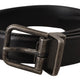 Black Calf Leather Logo Metal Buckle Belt