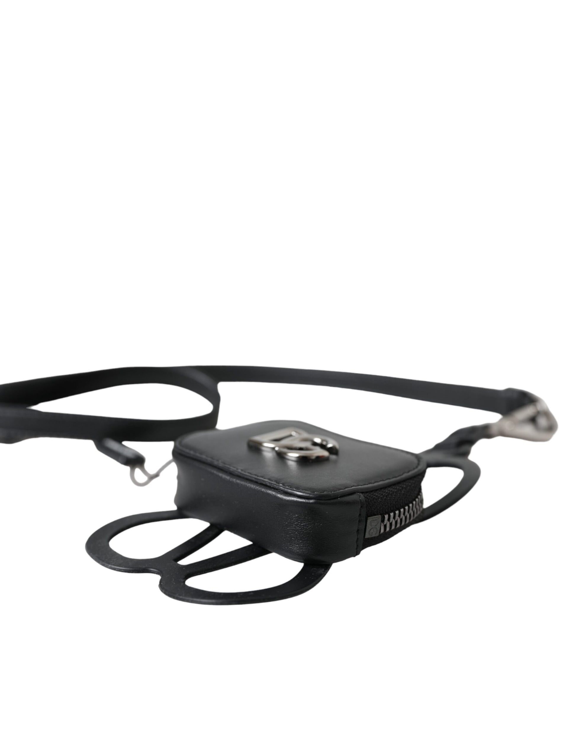 Black Calfskin Leather DG Logo Coin Purse Lanyard Wallet