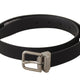 Black Canvas Leather Silver Tone Metal Buckle Belt