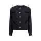 The Missy Gliss Bolero by Blazè Milano reimagines the cropped jacket with a modern attitude and sartorial flair. Crafted from soft-textured cotton tweed, it features an oversized bomber-inspired fit, enhanced by lightly padded shoulders for added structure. Contrasting velvet trims and five gold-tone buttons—fastening up to the collar—emphasize its refined character. The signature Smiley pockets on the front and navy lining highlight its contemporary appeal, striking the perfect balance between elegance and functionality.