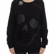 Black Cotton Motive Print Crewneck Pullover Sweater