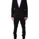 Gorgeous brand new, 100% Authentic Dolce & Gabbana black, two pieces suit is crafted from a cotton blend and features a jacket with a peak lapel, long sleeves, a chest pocket, side flap pockets and button cuffs. The trousers feature a mid rise, a button and zip fly, a waistband with belt loops, side pockets, back pockets and a regular length.