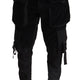 Black Cotton Skinny Corduroy Cargo Pants