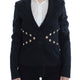 Black Cotton Stretch Gold Studded Blazer Jacket
