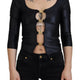 Black Cotton Stretch Open Chest 3/4 Sleeve Top