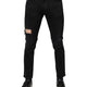 Black Cotton Tattered Skinny Denim Logo Jeans