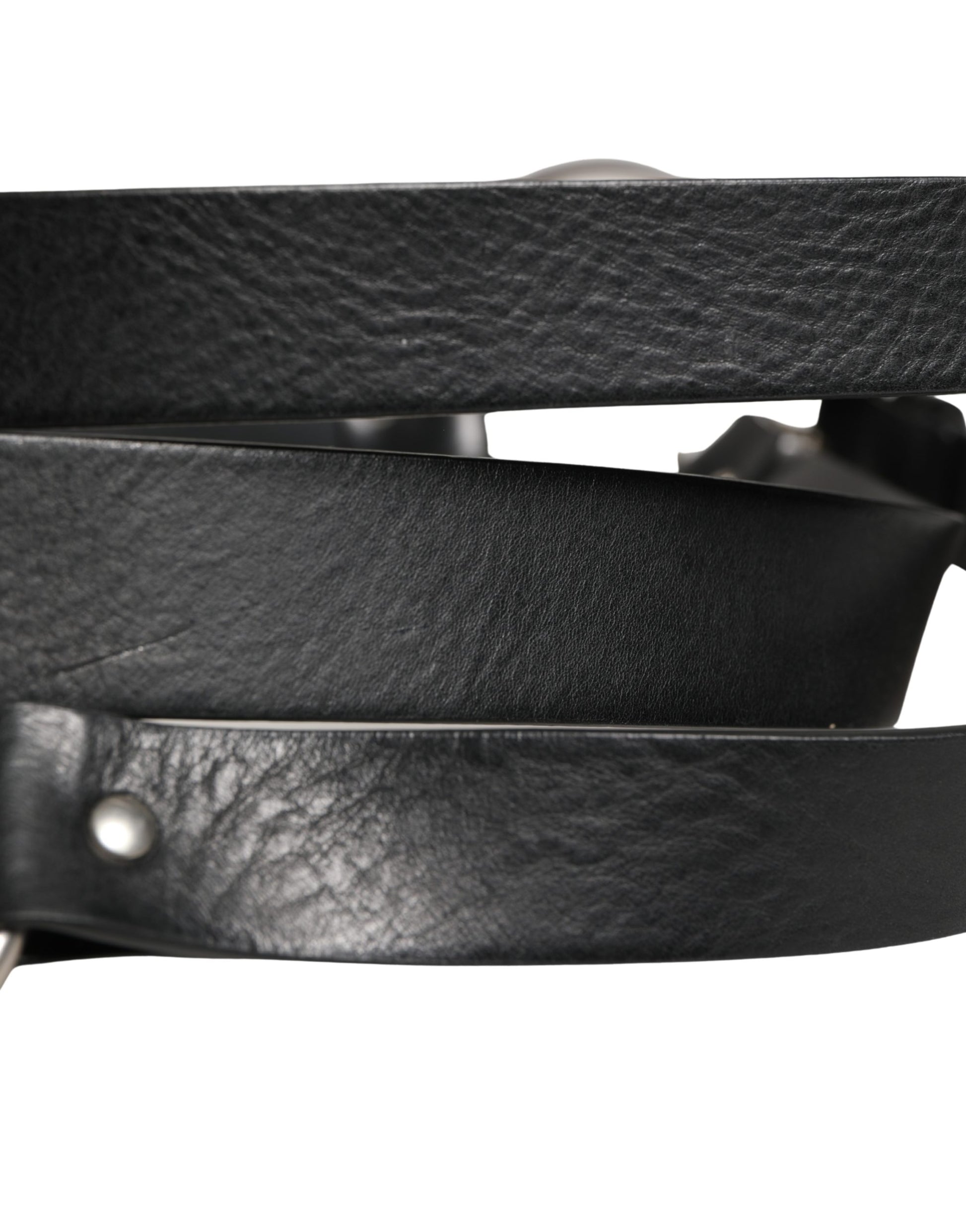 Gorgeous brand new, 100% Authentic Dolce & Gabbana belt combines classic Italian craftsmanship with fashion-forward design. It features a dual strap configuration made from richly textured black calfskin leather, giving depth and layered visual interest. Each strap is sleek and polished, with clean edges and fine stitching that denotes premium build quality.