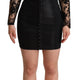 Gorgeous brand new with tags, 100% Authentic Dolce & Gabbana Black fitted mini-dress. The model looks as if she wore a long-sleeve lace top over a fitted bodysuit with hidden hooks.