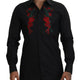 Black Floral Embroidery Men Long Sleeves GOLD Shirt