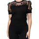 Black Floral Lace Short Sleeves Blouse Top