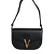 Black Grainy Calf Leather Logo Crossbody Shoulder Bag