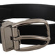 Black Grosgrain Leather Silver Logo Buckle Belt