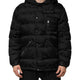 Black Jacquard Quilted Puffer Hooded Jacket