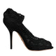 Black Lace Stretch Heels Mid Calf Boots Shoes