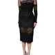 Black Lace Trim Nylon Tulle SheathMidi Dress