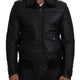 Black Lamb Leather Collared Men Coat Jacket