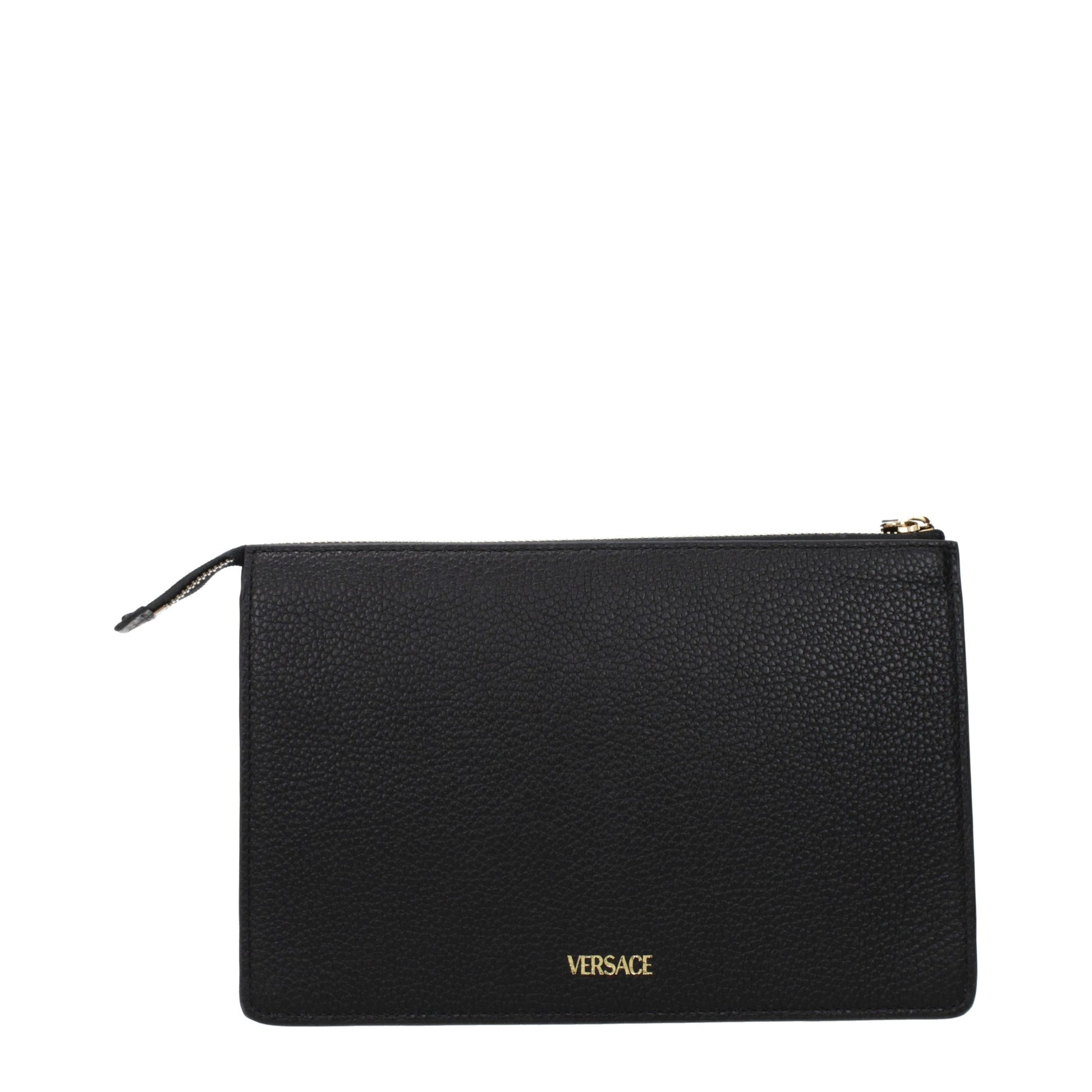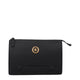 The product with MPN 10133651A021871B00V and code F86445 leather in black is a clutches designed by Versace. It has features like front detail, back logo.