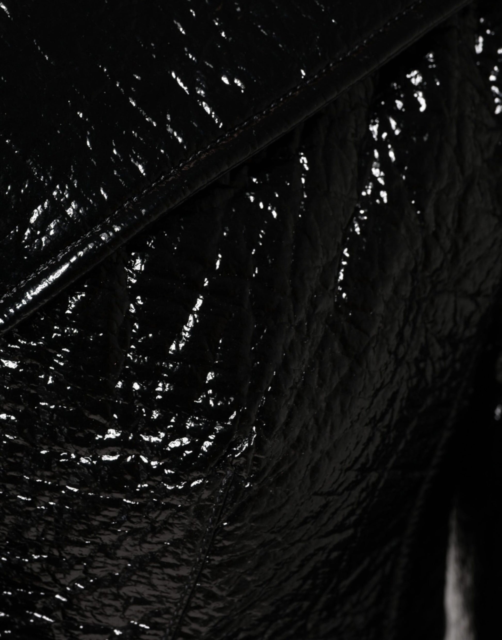 Black Leather Cropped Long Sleeve Coat Jacket