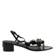 Black Leather Crystal Ankle Strap Sandals Shoes