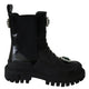 Black Leather Crystal Combat Boots