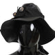 Black Leather DG Coin Crystal Wide Brim Hat