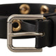 Black Leather Eyelet Silver Tone Metal Buckle Belt